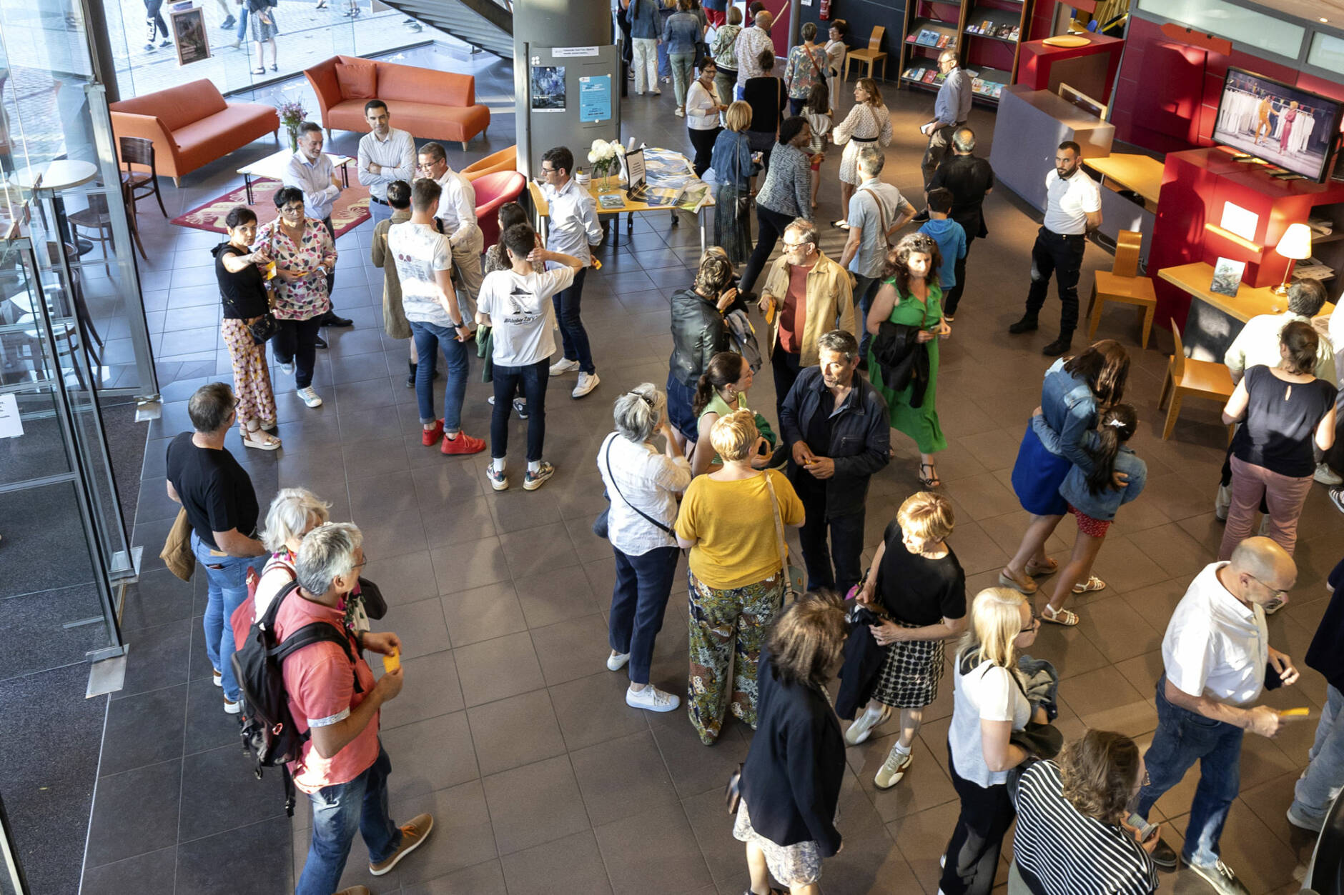Le hall est pensé pour être un espace d’accueil. Sa taille permet l’aménagement de différents espaces d’échanges avec le mobilier existant (fauteuils, canapés, tables…). Capacité 500 personnes